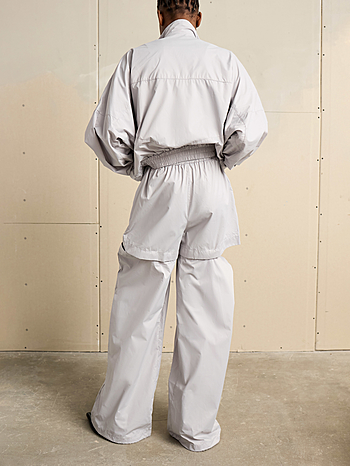 Костюм из тонкой плащевой ткани. Бомбер на резинке свободного кроя с цельнокройным рукавом. Карманы для удобства, воротник - стойка, застежка - пластиковая тракторная молния в цвет. Брюки на резинке с "полушортами " на отстегивающихся кнопках. Низ брюк имеет затягивающую кулису с фиксатором.