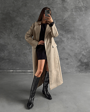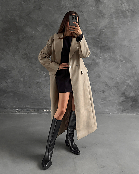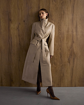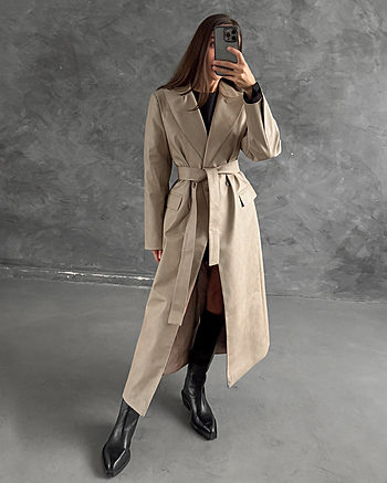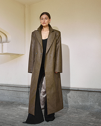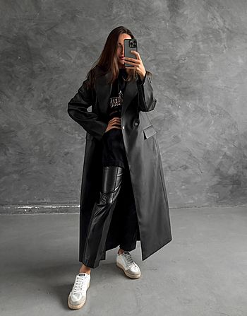 Одним из фаворитов этой коллекции, в который мы всей командой влюблены, стал наш тренч из эко-кожи с состаренным эффектом. Двубортный крой, длина макси, полусвободное прилегание, наличие пояса в комплекте, глубокие осенние цвета - это все внешнее описание, а самым главным будет то, что чувствуете Вы, когда его надеваете. При Вашем большом желании добавить чуть больше творчества в изделие, Вам поможет наша инструкция в описании к "юбке-баске из кожи 004". Центральная особенность этой кожи в том, что при долговременном ношении, кожа становится чуть мягче и эффект естественной потертости проявляться сильнее, добавляя винтажности.