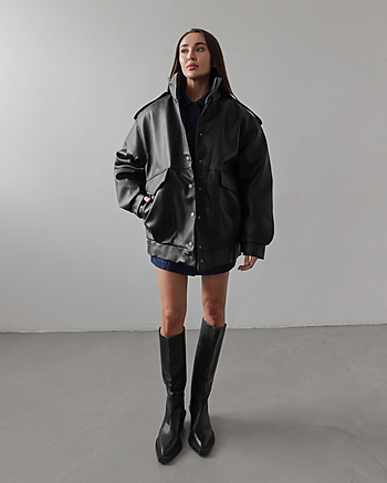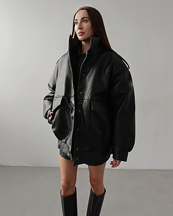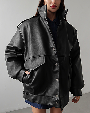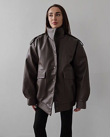 Утепленный бомбер oversize со стойкой из фактурной плотной эко-кожи. Наши излюбленные и проверенные опытом элементы: спущенная линия плеча с "погонами", паты для возможности под себя регулировать объем в манжетах и по низу изделия. Для тепла и удобства мы добавили длину чуть ниже бедра, накладные карманы и застежку на металлические плотные кнопки.