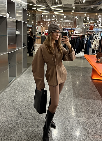 Пробный образец изделия осенней коллекции 2025 года. Косая бейка внутри выполнена другим цветом.